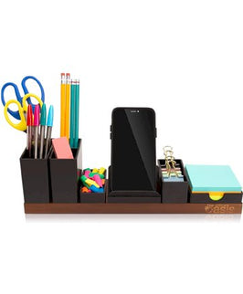 منظم مكتب قابل للتخصيص، قاعدة من خشب الخيزران مع صواني مغناطيسية، حامل تنظيم سطح المكتب للقلم والرصاص واللوازم المكتبية والملحقات، مثالي للمكتب المنزلي أو غرفة السكن الجامعي، بني