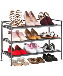 رف تخزين قائم بذاته قوي من Seville Classics لغرفة النوم، والخزانة، والمدخل، ومنظم غرفة النوم، ورف أحذية معدني متين قابل للتكديس، رمادي فاتح، مكون من 3 طبقات