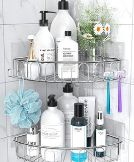 حامل دش زاوية من أوريمايد مصنوع من الفولاذ المقاوم للصدأ مع خطافات مثبتة على الحائط، منظم تخزين للحمام، لاصق بدون حفر، قطعتان، باللون الفضي فقط للزاوية 90 درجة