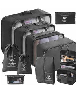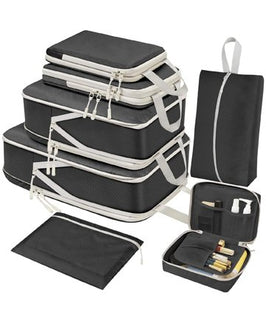 مجموعة من 10 مكعبات تعبئة لحقائب السفر ومنظمات السفر ومكعبات التعبئة ومجموعة قيمة لتنظيم حقائب السفر وحقيبة تخزين الأمتعة ومجموعة تعبئة السفر مع حقيبة تخزين الملابس (أسود)