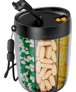 زجاجة منظم مكملات كبيرة من PULIV، تحمل 6 فيتامينات مختلفة في موزع حبوب واحد مع تصميم مضاد للاختلاط وفتحات واسعة، يسهل استرجاع الأدوية، تتضمن 20 قطعة من الملصقات اللاصقة